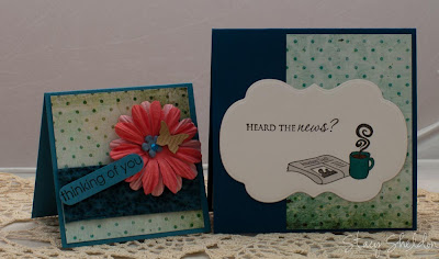 Thought I posted these a while back but, found them in the to upload folder this morning... these birdies are from the Paper and Such line "Song in my heart" this first card was done for the fish (halibut?) and was colored with prisma pencils.