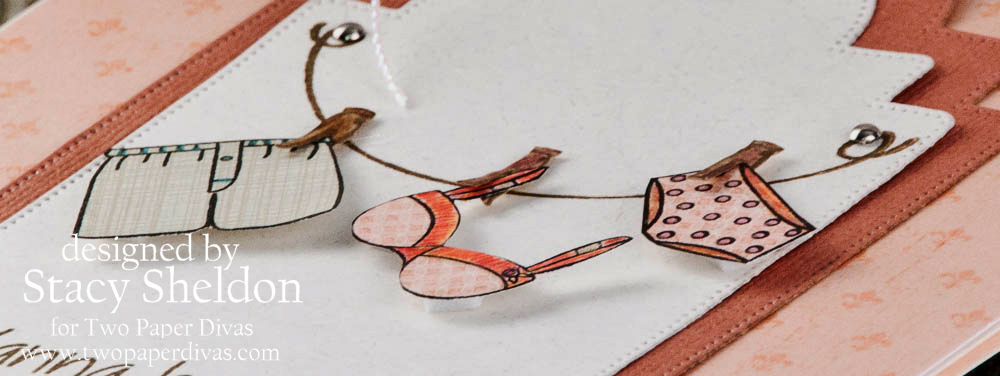 Now see that bright heart in the center? haha that is one of the remains of one of the first attempt sheets of the masked water colored cards from last weekends inspiration challenge. While I was messing around with these I may have figured out a way to actually use one of the sheets ( what's left of it) and that makes me happy. ( no clue why) but, tossing things is really hard for me so, this card was mainly made with scraps. the pink corrugate is die cut with an Taylored Expressions die and the ruffled lace is vintage. the sentiments are from two different Two Paper Diva's sets His & Her clothesline accessories and watt's up. Both of these cards are 6" square in real life.