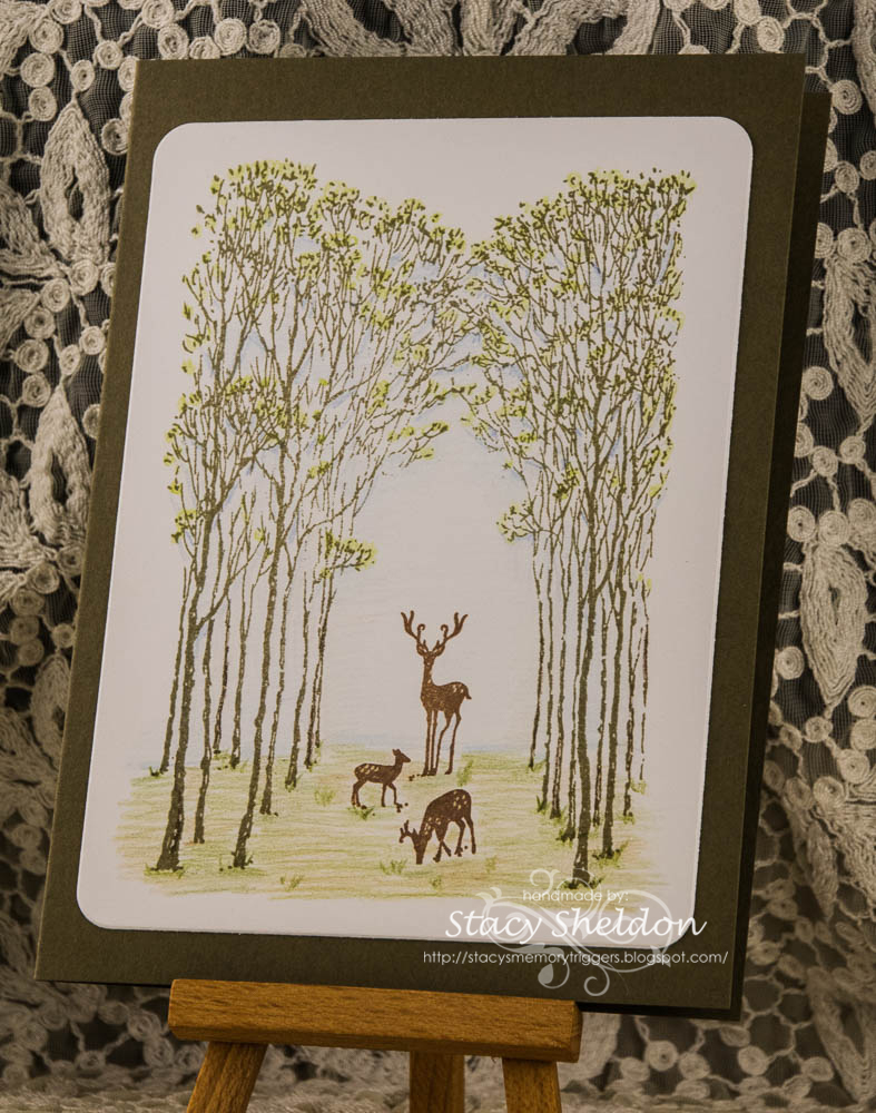 And then there was me, I have a challenge to do a "tank of gas" get away, to show some place you can visit from your home on a single tank of gas, and the whole time before I made this sample I had intended to do a woodsy forest scene card... and then I seen Michelle's challenge and decided it was too close to the same thing. and I had the compass on the table and thought well, I had also seen this double triangle fold come out for the tutorial of the week a few weeks ago and thought, ha that looks do able ( it is, the hardest part is not wiggling it when you cut the diagonal)